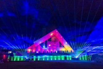 サーチライトやレーザーを用いたオーロラ演出等の光を融合。