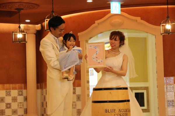 また、今回の挙式のコンセプトである「道」にちなんで、ゲストには足跡のスタンプを押していただきウエディングツリーを完成。お二人の誓いの場面に彩を添えました。「完全オリジナル」の新しい結婚式の提案に、ゲストの方々も感動され笑顔溢れる式となりました。