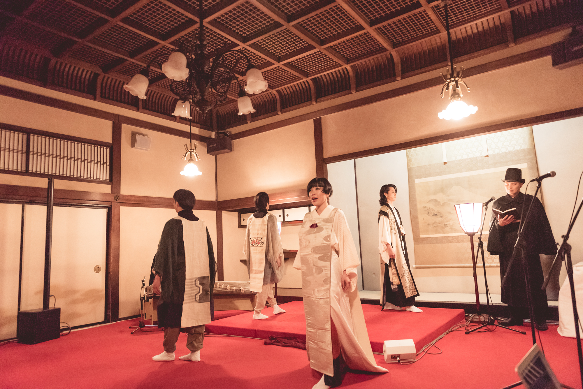 2018年11月29日(木)~30日(金)に加賀百万石の旧前田侯爵邸を移築した東京大神宮「神路の間」にて行われた日本神話公演・新訳古事記「イザナギ・イザナミ」(主催:小鳥の家)。