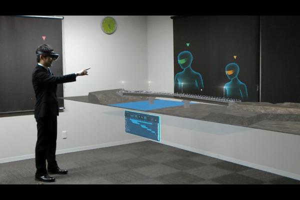 日本マイクロソフト株式会社との協業プロジェクト「Holostruction」は、自己完結型ホログラフィックコンピューター『Microsoft HoloLens』(マイクロソフト・ホロレンズ、以下ホロレンズ)を活用し、建設業の働き方を大きく変えることを目指しています。「Holostruction」により、会議室にいながら建設現場で工事を進めていくイメージを見ることができ、危険な現場も施工前に3次元データを確認しながら打ち合わせをすることができます。また、施工スケジュールに沿って工事の進み方も確認ができ、空間に浮かんで見える映像は100分の1のサイズから実物大まで、見る角度や場所なども自由に動かすことができます。