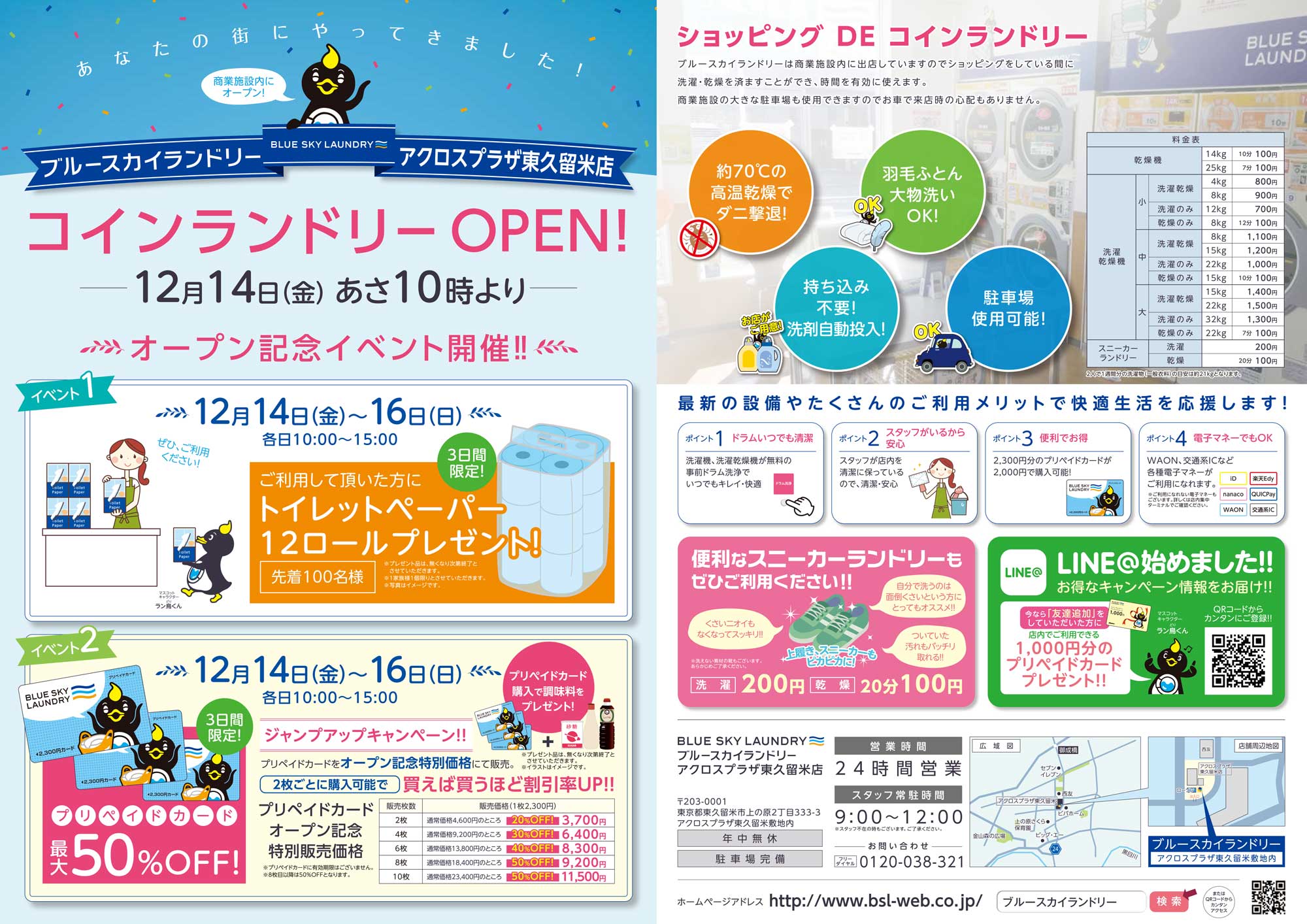 この度2018年12月14日(金)より東京都東久留米市アクロスプラザ東久留敷地内にブルースカイランドリーアクロスプラザ東久留店を出店致します。