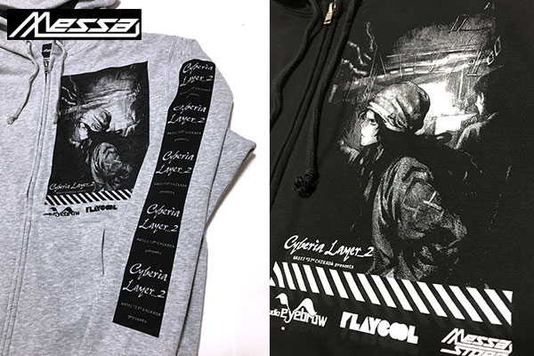 またメッサストア及び、WASEI"JJ"CHIKADA氏のHPにて、Tシャツまたはジップアップパーカーをお買い上げの方に数量限定で、WASEI"JJ"CHIKADAの最新DJ MIX “Cyberia Layer_2 JJ’s bootleg Mix 2” のダウンロードコードが付く。