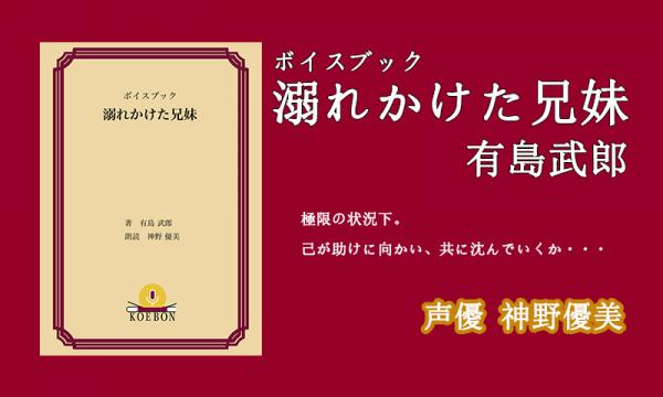ボイスブックの制作・配信を行うJAT[一般社団法人日本タレント協会](以下「JAT」)は、新人声優・神野優美(https://twitter.com/ymmmm015)を起用して文豪作家・有島武郎著『溺れかけた兄妹』のボイスブック版を制作し、12月10日(月)より、JATが運営するボイスブック配信サービス「コエボン」にて配信を開始します。初々しく全力投球の神野優美の朗読をお楽しみいただけます。