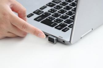 ●USBポートに挿すだけで使用開始。「Windows Hello」対応
