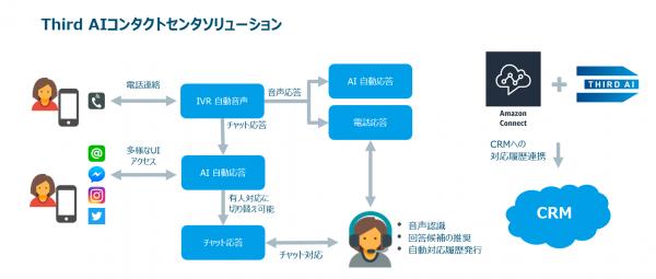 Third AIコンタクトセンターソリューションは、これまでチャットボットを始め、様々なコミュニケーションチャネルに対して最適な人工知能を接続し、お客様の課題解決を行うサービスとして展開してまいりました。Amazon Connectと連携することで「電話」に対する人工知能対応の機能を強化し、人工知能によるコンタクトセンターの「品質の向上」と「効率化」を実現いたします。