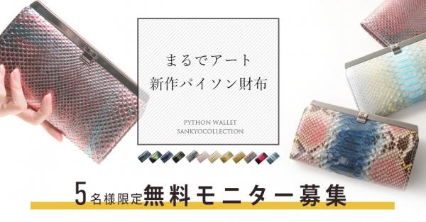 世界各国からセレクトし、デザイン・素材にこだわった上質な商品を販売する株式会社三京商会(大阪府・箕面市)は、2018年12月17日より、最新作まるでアートのように美しい「ダイヤモンドパイソン長財布」の商品モニターを5名募集いたします。商品モニターに選ばれた方には、実際に財布を使用して頂き商品の感想と共にインスタグラムに写真を投稿していただきます。