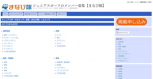「ジュニアスポーツのメンバー募集【まなび隊】」は、小学生や幼児向けのスポーツ教室やスポーツ少年団などを運営されている方のメンバー募集をお手伝いするサイトでもあります。