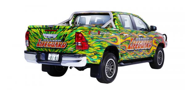 株式会社チェリオコーポレーション(本社:大阪府高槻市 代表取締役社長:菅 春貴)は、販売する超生命体飲料『ライフガード』の特長的なデザインである「迷彩」を、TOYOTA:HILUXにペイントしたシンボルカーを制作いたしました。