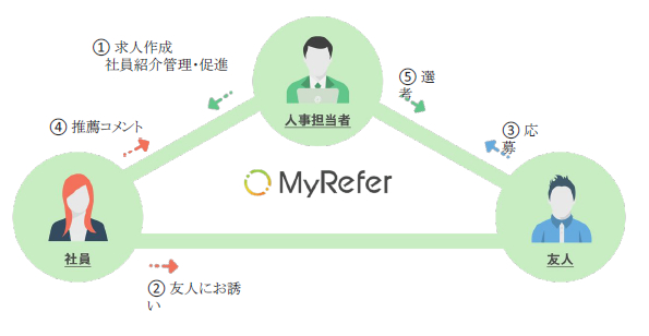 『MyRefer』は、簡単にリファラル採用を企業に導入し、活性化させるクラウドサービスです。