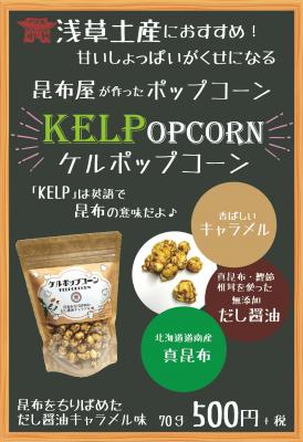 昆布は英語で「KELP(ケルプ)」というところから、ケルプとポップコーンのコラボで