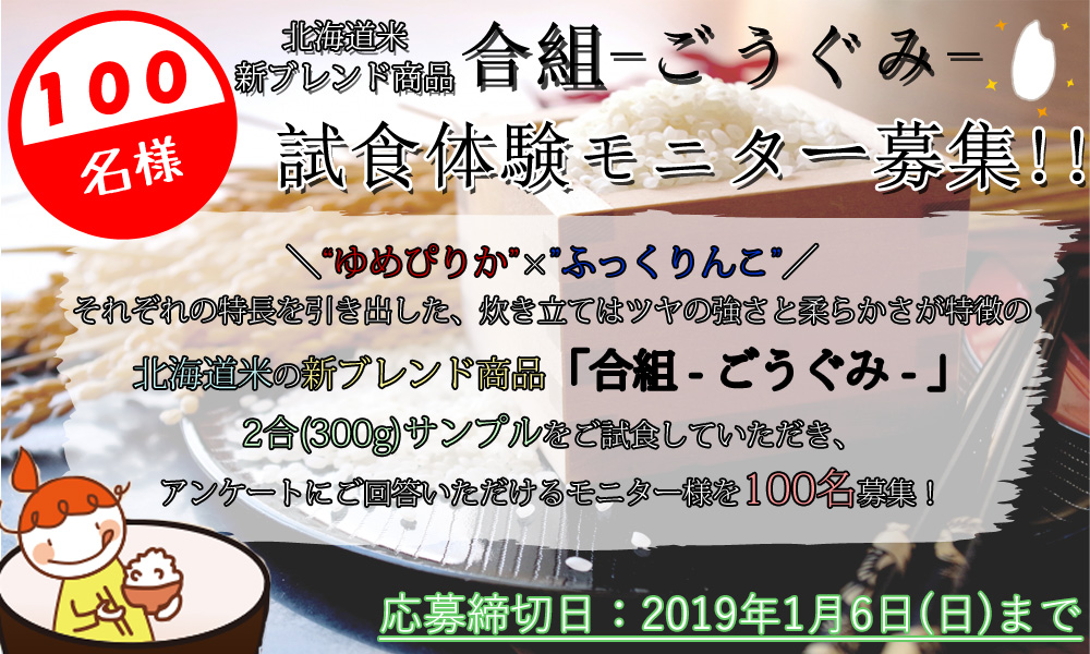 北海道産米の「ゆめぴりか」と「ふっくりんこ」をブレンドした、新ブレンド商品『合組-ごうぐみ-』を