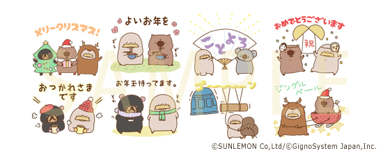 大人気「ウォンバットさんたち」の冬バージョンが登場。クリスマスや年末年始のご挨拶にもぜひぜひ使ってみたらイイジャナイノー。