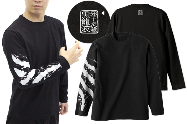 飛影が真の力を発揮するとき、右腕に宿す黒龍をそのままロングスリーブTシャツの右袖にプリントしました。