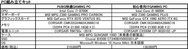 今回販売するPC組み立てキットは、以下の2種類をご用意いたしました。
