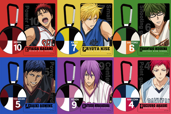 今回発表するのは、黒子テツヤをはじめとする火神大我、黄瀬涼太、緑間真太郎、青峰大輝、紫原 敦、赤司征十郎の7人がラインナップ。それぞれのユニフォームカラーを基調としスタイリッシュにデザイン。『黒子のバスケ』ファンなら一目瞭然、だけどさり気ない使いやすいグッズとなっています。