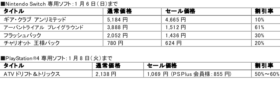 ■Nintendo Switch専用ソフト:1月6日(日)まで