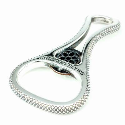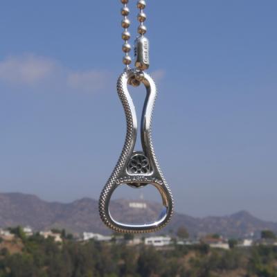 中でもひときわ目を引くのが、実際に使用できるスターリング・シルバー製のボトルオープナー型のペンダントトップ“CHARCH KEY(チャーチ・キー)”。1960年代に公開された映画“暴力脱獄(洋題:COOL HAND LUKE)”の中でポール・ニューマンが着用していたペンダントからインスパイアされて誕生しました。本アイテムはボトルオープナーとして使用した際、素材特有の柔らかさでフック部分が変形しないように、シルバーより硬い白銅製のアメリカ合衆国の10セント硬貨(Dime)が隠れたギミックとして使用されているのが大きな特徴です。
