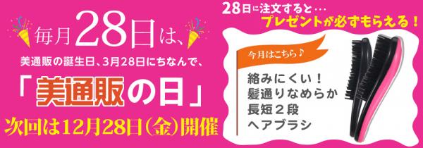 「美通販」では、開業を記念し、毎月28日を「美通販の日」として、ご注文いただいたお客様全員に素敵なプレゼントを差し上げるキャンペーンを開催しております。