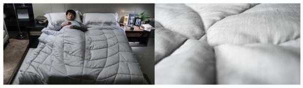 「体温で暖まるグラフェン配合 冬眠ふとん」は、高い熱伝導率を誇る炭素素材・グラフェンを配合した繊維を使った掛け布団です。