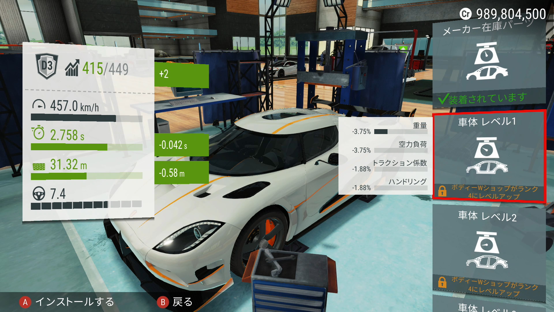■ボディワークショップ:最速ドライブに到達するための欠かせない要素のひとつに車体のウェイトがあります。ボディーワークショップで重量の比較を行いながら、より軽やかな走りを実現するコンビネーションを導き出しましょう。