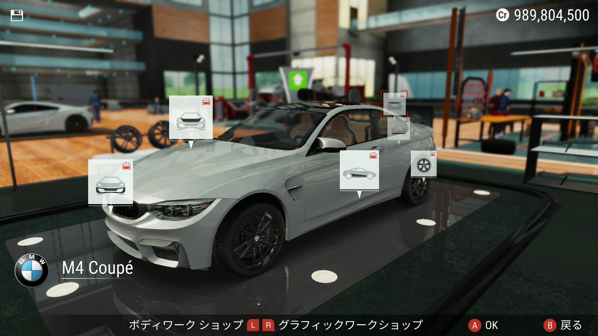 ■グラフィックワークショップ:ボディやパーツの色、ステッカーなどの見た目のカスタムを行います。有名車種を大胆にカスタマイズする醍醐味があります。