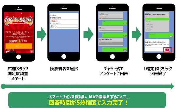 アルバイトスタッフは、「従業員満足度調査」に回答するのではなく、自分の店舗のMVPスタッフは誰かを投票するつもりでアンケート回答画面を開く、「ファンくるES」独自の仕掛け。