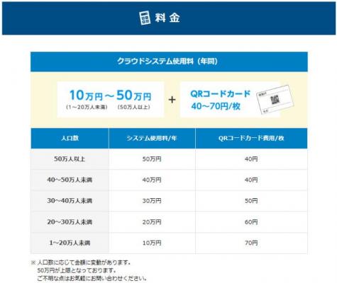 ■クラウドシステム使用料 :10万円~50万円 (QRコードカード40~70円/枚)