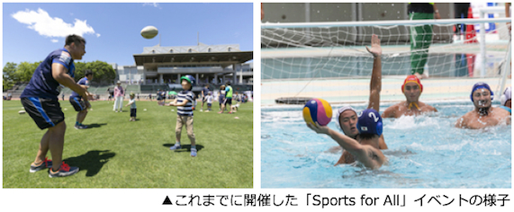 誰もがスポーツに参加できる環境作りを目指して、本市は東京2020オリンピック・パラリンピック競技大会等に向けて実施するスポーツイベント名を「Sports for All」としています。