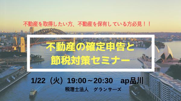 1月22日、不動産所得がある方向けに特化した「不動産を取得したい人、不動産を保有している人必見!不動産の確定申告と節税対策セミナー」を税理士法人グランサーズ(東京都品川区東五反田)主催の元、開催いたします。弊社社員の鈴木聡一郎(すずき そういちろう)が講師を務めます。