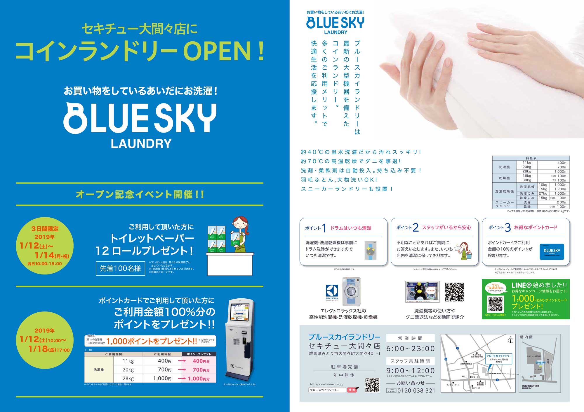 この度2019年1月12日(土)より群馬県みどり市セキチュー大間々店敷地内にブルースカイランドリーセキチュー大間々店を出店致します。