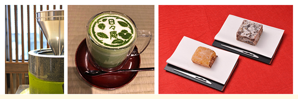 店内では、石臼を使った「ひきたて宇治抹茶」や「抹茶ラテ」、「あずきラテ」などのお飲み物や、葛粉の高級品“吉野本葛”を使用した焼きたての「くずやき」※1などの甘味も提供しています。中でも、口の中でとろける食感の「くずやき」は、日々庵代表の久野が初めて食べた時に感動した和菓子で多くの方に味わっていただきたい逸品です。日々庵はカフェのみの利用も可能です。ゆったりと落ち着いた和の時間をお楽しみください。