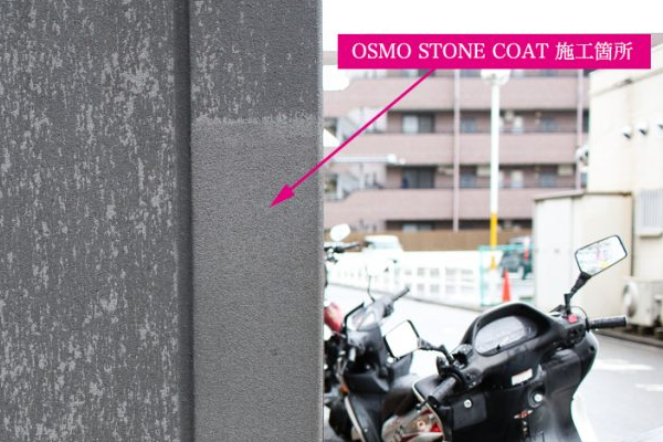 OSMO Stone Coat (オズモ・ストーンコート) は、特殊フッ素ポリマーが配合された、高い浸透性能を有する特殊コーティング塗料です。 石材やコンクリートに吸い込まれた後、石材に含まれるシリカの成分と反応して硬化。その内部にて超撥水、更には超撥油の機能を持った 優れたコーティング・ブロック層を形成致します。従来の石材用コーティング剤の様に、施工表面に留まり成膜を形成する仕様とは完全に 異なります。つまりは、物理的な作用… 例えば人の靴や車のタイヤに踏まれるなどして、短期間にこすれ、消えて無くなることはありません。