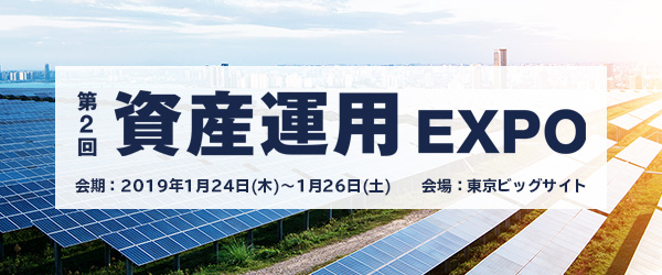太陽光発電、風力発電等の再生可能エネルギーで新しい未来を提案するスリーアールエナジー株式会社(所在地:福岡県福岡市、代表取締役 今村 陽一)は、2019年1月24日(木)~1月26日(土) の3日間、東京ビッグサイトにて開催されるリードエグジビションジャパン株式会社主催の「第2回 資産運用EXPO」(https://www.am-expo.jp/ja-jp.html)に出展いたします。本展示会は、不動産、株式、投信、保険、金(きん)、プラチナなど190社の投資商品を比較・購入できる展示会で、約25,000名の来場が見込まれています。