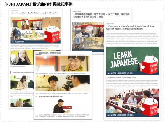 弊社がアジア7か国向けに運営するメディア『FUN! JAPAN』(https://www.fun-japan.jp/)では、日本での魅力的な留学生活を知ってもらい留学前の不安を払拭するため、留学希望生向けに様々な情報配信を行っており、読者から大きな反響を得ています。留学生向けブランディング・プロモーションをお考えの方は、是非お気軽にご相談ください。