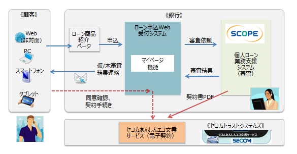 (注1)「SCOPE 個人ローン業務支援システム」とは、個人ローンの申し込みを受付後、個人信用情報機関への照会、照会結果の名寄せや集計、融資条件への適合性や過去の取引状況のチェックなどを自動化し、審査の効率化するシステムです。