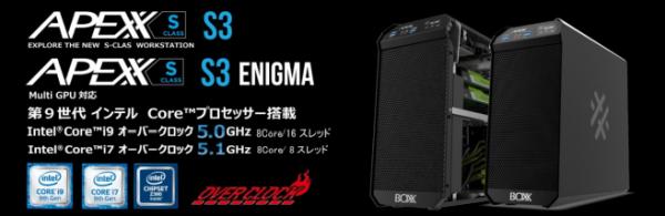 BOXX Technologies.(米国 テキサス州 オースティン)製品の国内販売元、トーワ電機株式会社 BOXX事業部(本社:宮城県仙台市)は、第9代インテル(R) Core(TM) シリーズを搭載したオーバークロック・ワークステーション、「APEXX S3」およびマルチGPU対応の「APEXX S3 ENIGMA」の受注を本日1月18日(金)より開始します。APEXX S3シリーズに搭載されるプロセッサーのCore i9 5.0GHzおよびCore i7 5.1GHzは、動作クロックを高い液体冷却機能によってコントロールすることで静音性を保ち、Autodesk 3ds Max、Inventor、Maya、REVITをはじめSolidworks、CATiAなど、主要な3D CADや3Dモデリングアプリケーションに対して驚異的なパフォーマンスと安定した動作をオフィスのデスクサイド環境で提供します。