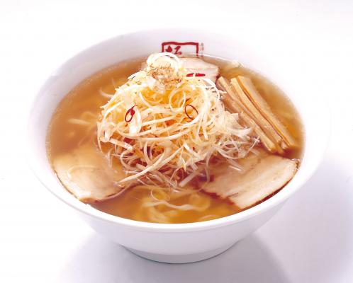 オリジナルのピリ辛ダレを和えた、みずみずしい細切りのねぎをたっぷりと盛ったねぎラーメン。ピリ辛ダレは、当チェーンの特徴である「透明な豚骨スープ」を変えずに、スープにもねぎにも合うように調合しています。シャキシャキのねぎをスープに浸して、しんなりしたところを麺と一緒に食べるのが、ねぎラーメンの美味しい食べ方。スライスしたチャーシューと、角切りのチャーシューの2種類の手作りチャーシューが味わえる、女性に人気のラーメンです。