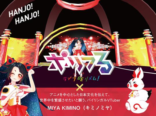 キミノミヤは自身が出演するVRリズムゲーム「ポリフる ライブ DE リズム!(開発:テレビ朝日メディアプレックス社)」を紹介!臨場感のあるVR世界の中でキミノミヤのライブパフィーマンスを目の前で見ながら、実際のゲーム体験をして頂けます。さらに、ブースでは、キミノミヤのコスプレイヤーがゲームの説明をしてくれます!