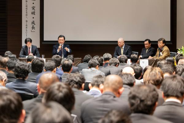 今年のテーマは「徹底・突破・成長」としました。平成が終わり消費税が10%にアップする年であり、本格的な激変時代への突入が予想される中、今回は何よりも「実践」を重視し、成果を出し続けておられる住宅産業塾の先輩企業実践者を特別ゲストとし、講演やパネルディスカッション、住宅会社のとるべき今後の指針となる提言を行いました。