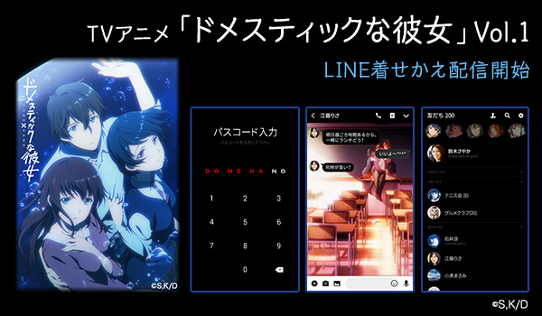 株式会社インクルーズ(東京都渋谷区、代表取締役社長 山崎 健司)は、LINE株式会社(東京都新宿区、代表取締役社長 出澤 剛)が運営するコミュニケーションアプリ「LINE」内の着せかえショップにて、TVアニメ「ドメスティックな彼女」Vol.1LINE着せかえを2019年1月25日(金)に配信致しました。
