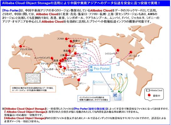 秘密分散技術を活用した独自のセキュリティソリューションを開発・販売する株式会社イノベーション・ファーム(本社:東京都千代田区、代表取締役社長:山田 徳行、以下「イノベーション・ファーム」)は、既に対応済であるMicrosoft Azure Blob Storage、AWS-S3、IDCFオブジェクトストレージ、IIJGEOストレージに加え、SBクラウド株式会社がサービス提供している『Alibaba Cloud Object Storage Service』を情報伝達のHUB-STATIONとして活用し、中国を中心としたアジア圏におけるセキュアで簡単、そして確実な情報交換を実現するソリューション『Pro-Porter version2.0』を2019年1月28日より提供開始致します。
