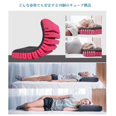 The Cubesは70個のキューブを両側から支えるという構造をしており、どんな姿勢でも頭にフィットし、どこにも負担のかからない寝姿勢を保ってくれます。質の高い睡眠をサポートし、いびきの改善にも効果的です。