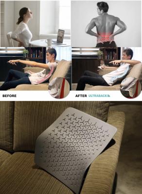 ULTRABACKはソファのような柔らかい座面でもしっかりと安定し、角度調整も簡単にできます。ソファの座面の深さや背当ての高さ、そして自分の好みに合わせて立てかけるだけで、リラックスしたままS字カーブを保てます。