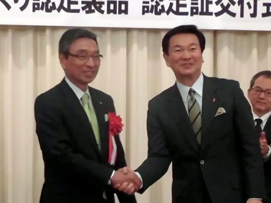 これに伴い、千葉県による認定証交付式が平成30年1月30日に開催され、森田知事より認定証を受領しました。