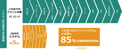 ■Tシャツ1枚のプリント/出荷にかかる時間を従来の1/6に短縮