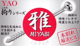 八尾製鋲株式会社(大阪府河南町、社長・河野伸幸)では、半透明樹脂ケース入り・少量ユーザー対応の人気シリーズ「プラパックミニ」に木割れ解消ビス「雅・MIYABI」を加え、2月中旬から販売を開始いたします。木割れ解消ビス「雅」は、弊社の「タピックス」をベースに改良を行い、その進化形として発売した製品です。先端部のねじ山ピッチを従来に比べて短くし、ビスが木材に入った途端、ねじ山のエッジが短いストロークで木の繊維を強力に切断することで、打ち込みの確実性を高めるとともに、木割れが起こるリスクを解消します。また、安心のメイドインジャパンをあらわす日の丸モチーフの包装デザインが建築業界で注目を呼び、上記の性能と相まって、多くのプロユーザーが指名買いするヒット商材となっております。この度の「プラパックミニ」への追加によって、大量需要のプロユーザーだけでなく、DIYを楽しむ一般のお客様との接点がいっそう広がり、ホームセンターなどの店頭を通じて、より多くの方々が「雅」の優れたパフォーマンスを手軽にお確かめいただけるものと考えます。なお、販売取り扱いの商社・小売店などの詳細につきましては、八尾製鋲営業部に直接お問い合わせください。