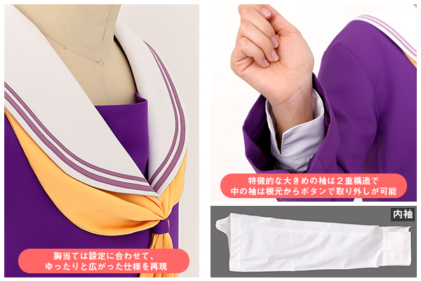 作品の色彩豊かな世界観を表現した、上質なセーラー服に仕立てました。