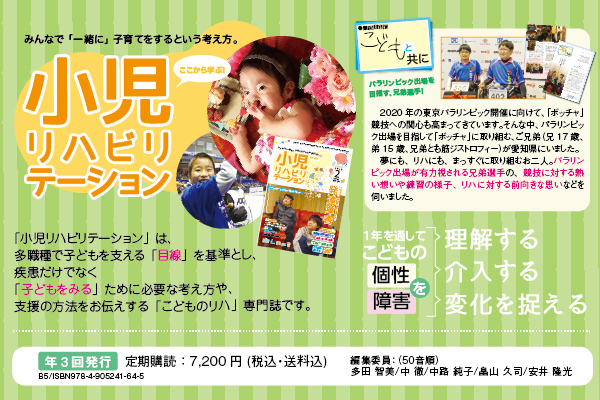 次号のvol.4では、小児リハビリテーションの第一線で活躍する先生方をお招きして、対談形式にて重度心身障害についてお話いただきます。