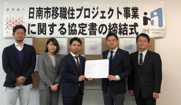 ウェブ面接ツール「インタビューメーカー」を運営する株式会社ブルーエージェンシー(本社:東京都港区、代表取締役:前田裕人)と、宮崎県日南市(市長:﨑田恭平)は、地方創生事業において連携提携を締結、1月31日に協定締結式を実施いたしました。