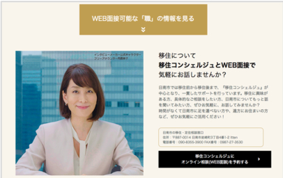 移住に興味を持った利用者は、メディア上から移住相談窓口にアクセス可能。オンライン上で日南市の移住コンシェルジュとの面談ができるため、日南市を訪れる前に、移住に関する相談・サポートを受けることが可能です。